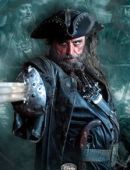 Edward "Blackbeard" Teach war einer der gefürchtetsten Piraten. Im Kampfe band er sich brennende Lunten in seinen Bart um den Gegner einzuschüchtern.Er kommandierte die Queen Anne`s Revenge, die nach seinem Tod in den Besitz von Hector Barbossa überging. Mit Hilfe seines Schwertes war die Queen Anne`s Revenge von ihm allen zu kontrollieren. So gehorchte z.B. die Takelage seinem Befehl. Ausserdem hatte er auch Einfluss auf die geschwindigkeit des Schiffes. Er beherrschte die Kunst des Voodoo und hatte Zombiepiraten in seiner Mannschaft. Diese waren zäher und leichter zu kontrollieren als normale Piraten. Er begab sich auf die Suche nach dem Jungbrunnen da ihm sein Quartiermeister vorhergesagt hatt, das er binnen 2 Wochen sterben würde. Seine Tochter Angelica war der 1. Offizier an Bord der Queen Anne`s Revenge. Er zwang Jack Sparrow, ihn zu dem gesuchten Jungbrunnen zu führen. Dort angekommen wird er allerdings von Jack Sparrow getäuscht, der damit Angelica rettet, Blackbeard aber dem Tode preisgibt. |