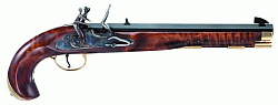 Das Steinschloss (auch „französisches Schloss“ genannt) ist ein Auslösemechanismus für Vorderladerfeuerwaffen.Erste Vorformen gab es bereits im 16. Jahrhundert (Schnappschloss), allerdings funktionierten diese sehr schlecht. Im 17. Jahrhundert wurde das System verbessert und setzte sich allmählich durch, da es nicht ganz so wetterabhängig war wie das Luntenschloss, und weil man immer feuerbereit sein konnte, ohne Lunte zu verbrauchen. Ab 1704 hatte es sich bei allen Armeen durchgesetzt und das Luntenschloss fast vollständig verdrängt. Lediglich die Kavallerie verwendete noch länger das Radschloss. Später wurde es auch bei der Kavallerie eingeführt, da es billiger und pflegeleichter war als das Radschloss. Ein Federmechanismus wird vor dem Schuss gespannt. Der Abzug entriegelt den Mechanismus, so dass der Hahn mit dem eingespannten Feuerstein auf eine Metallklappe (Batterie) schlägt. Dadurch wird die Pfanne geöffnet und es werden durch Abrieb der Batterie (nicht des Feuersteins!) Funken erzeugt, die in das in der Pfanne befindliche, besonders feinkörnige und leichtentzündliche Pulver (Zündkraut) fallen und dieses entzünden. Das Zündkraut brennt ab und zündet seinerseits durch das Zündloch die eigentliche Treibladung. |