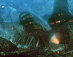 Die Stadt besteht nur aus alten, übereinandergeschichteten Wracks, die von Piraten bewohnt werden. Hier ist der Hauptversammlungsort der neun Piratenlords. |